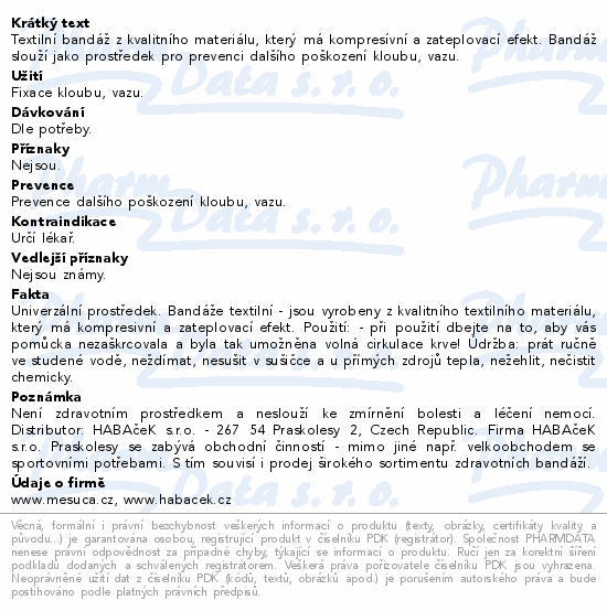 Textilní bandáž z kvalitního materiálu, který má kompresívní a zateplovací efekt. Bandáž slouží jako prostředek pro prevenci dalšího poškození kloubu, vazu.