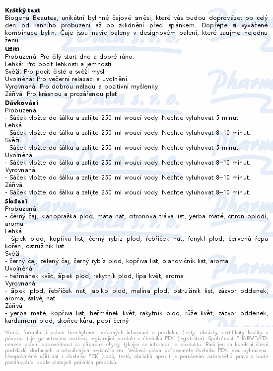 Biogena Beautea, unikátní bylinné čajové směsi, které vás budou doprovázet po celý den od ranního probuzení až po zklidnění před spánkem. Dopřejte si vyvážené kombinace bylin. Čaje jsou navíc baleny v designovém balení, které zaujme nejednu ženu.