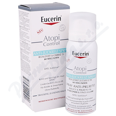 Eucerin® AtopiControl Sprej proti svědění zmířňuje svědění během 60 vteřin až na 6 hodin. Okamžité a dlouhotrvající zmírnění, ihned ochlazuje a zklidňuje pokožku.