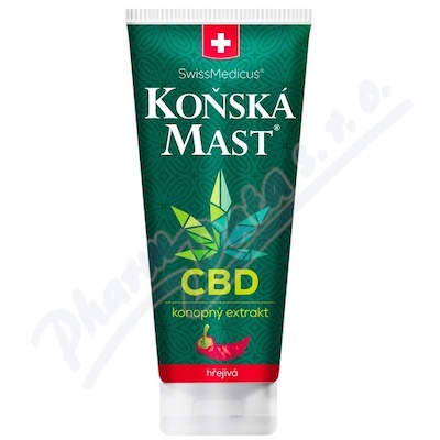 Koňská mast s CBD je unikátní bylinný balzám vyrobený z 25 druhů bylinných a rostlinných extraktů podle tradiční švýcarské receptury, obohacený o CBD extrakt. Přípravek má hřejivý účinek.