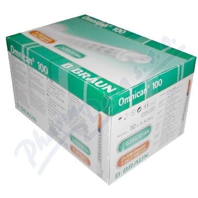 OMNICAN 100-100I.U./1ML 30GX12 (100), Inzulinová stříkačka s integrovanou jehlou - inzulin 1ml /0,30x12 mm/.