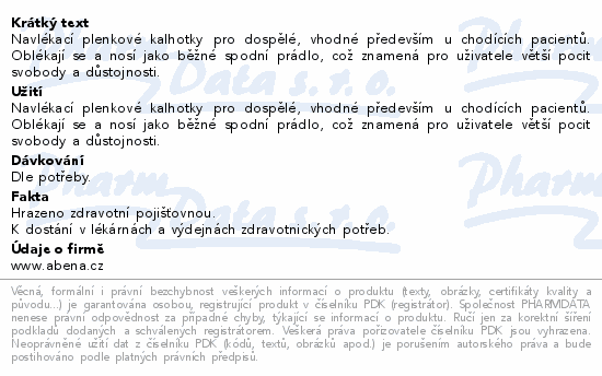 Navlékací plenkové kalhotky pro dospělé, vhodné především u chodících pacientů. Oblékají se a nosí jako běžné spodní prádlo, což znamená pro uživatele větší pocit svobody a důstojnosti.