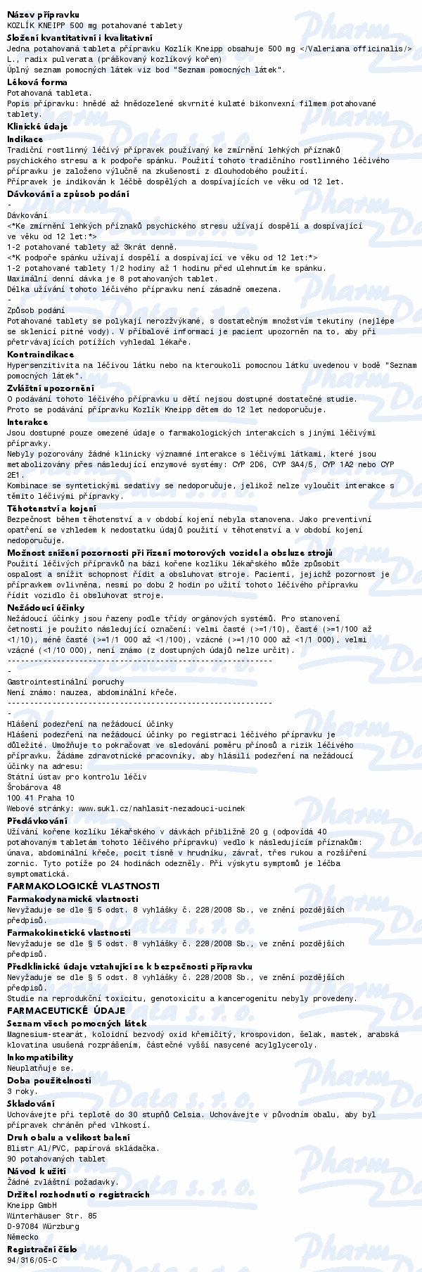 Kozlík Kneipp slouží ke zmírnění lehkých příznaků psychického stresu a k podpoře spánku. Použití tohoto tradičního rostlinného léčivého přípravku je založeno výlučně na zkušenosti z dlouhodobého použití. Tradiční rostlinný léčivý přípravek. Čtěte pozorně příbalový leták.