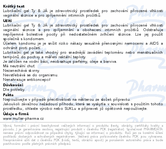 Lubrikační gel Ty & JÁ je zdravotnický prostředek pro zachování přirozené vlhkosti vaginální sliznice a pro zpříjemnění intimních prožitků.