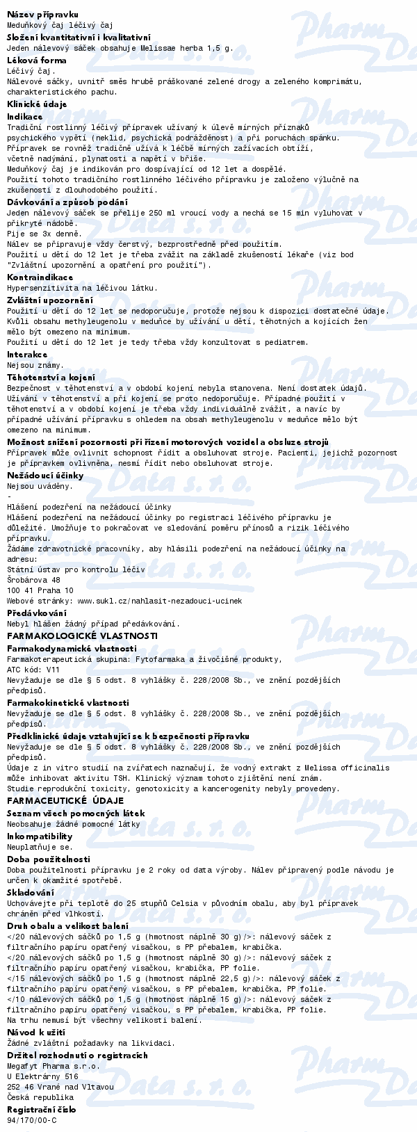 Megafyt Meduňkový čaj spc.20 I