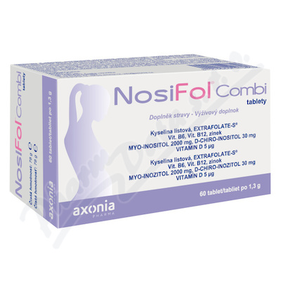 NosiFol Combi je doplněk stravy s obsahem myo-inositolu, d-chiro-inositolu, vitaminů a zinku. Zinek podporuje normální plodnost a reprodukci.
