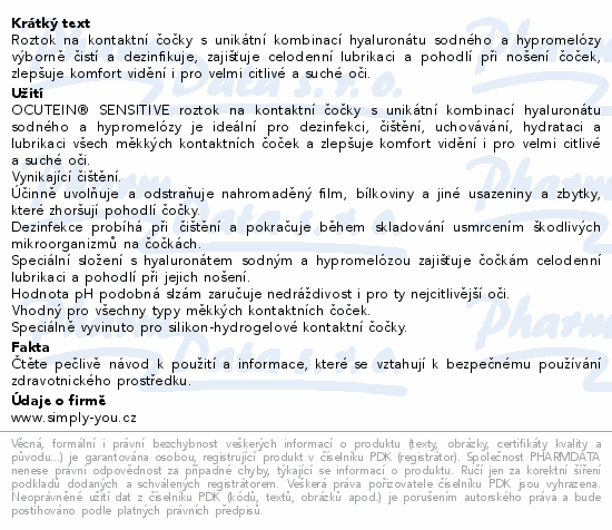 OCUTEIN SENSITIVE roztok na kontaktní čočky 360ml