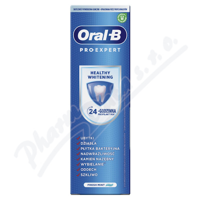 Zubní pasta Oral-B Pro-Expert Healthy Whitening je klinicky ověřená a profesionálně navržená společně se zubními lékaři, bělí odstraňováním povrchových skvrn a při čištění dvakrát denně poskytuje 24hodinovou ochranu proti zubnímu plaku.