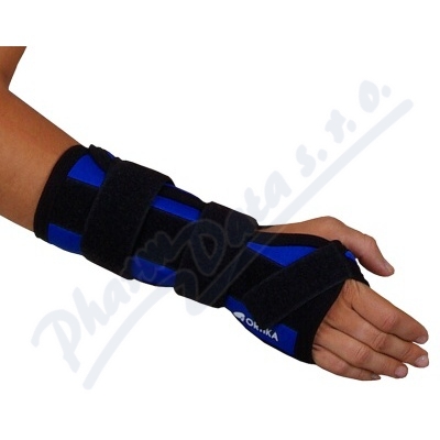 Kratší varianta ortézy k fixaci zápěstí užívaná v ambulantní praxi. Dobře obepíná zápěstí a zajišťuje vysoký užitný komfort. Duralová dlaha, kterou lze vyjmout a tvarovat je zapravena v textilním pouzdru. Vyrobena z příjemného elastického materiálu.